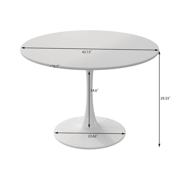 42.13 in. White Modern Round Outdoor Coffee Table with MDF Tabletop, Metal Base