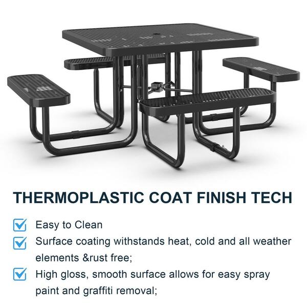 46 in. Outdoor Black Square Steel Picnic Table Seats 4-People