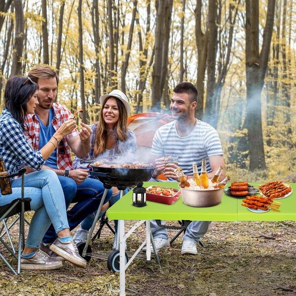 49.21 in Foldable Green Rectangle Steel Picnic Table, Indoor & Outdoor Portable Folding Table