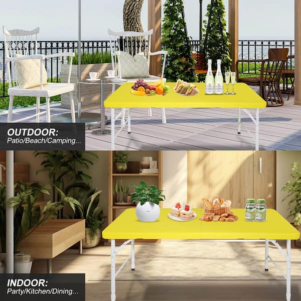 49.21 in Foldable Yellow Rectangle Steel Picnic Table, Indoor & Outdoor Portable Folding Table