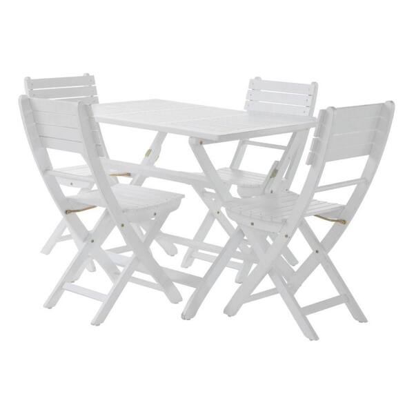 5-Piece Acacia Wood Outdoor Dining Set, Patio Furniture Set Include Folding Table and Chairs for Garden, Backyard, White