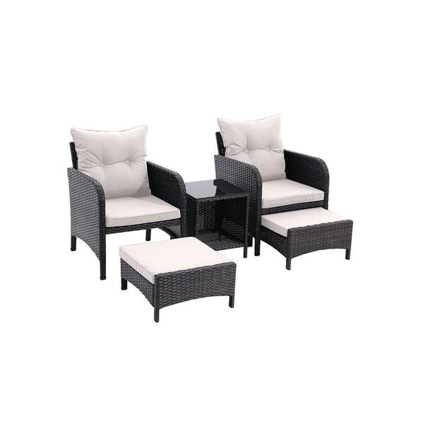 5 Piece Outdoor Patio Furniture Set, All Weather PE Rattan Conversation Chairs with Beige Cushions
