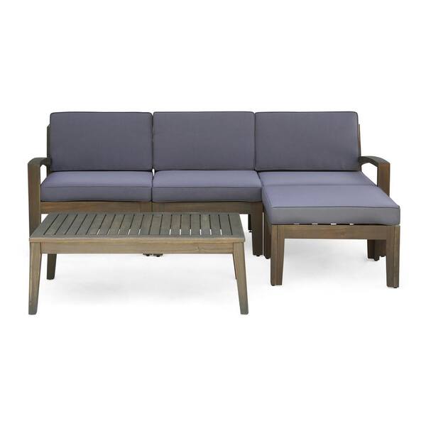 5-Piece Wood Patio Conversation Set, Patio Sofa Set with Gray Cushions