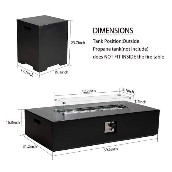 59.5 in. Black 50,000 BTU Outdoor Propane Gas Fire Pit Table with Glass Wind Guard