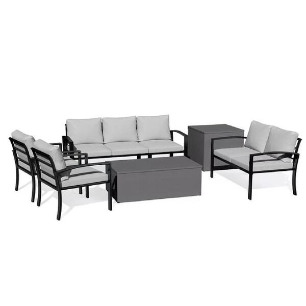 6-Piece Metal Patio Conversation Set with Light Grey Cushions and 2 Storage Boxes for Patio, Garden