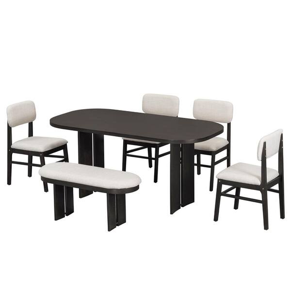 6-Piece Rubber Wood Outdoor Conversation Patio Furniture Set with Beige Cushions