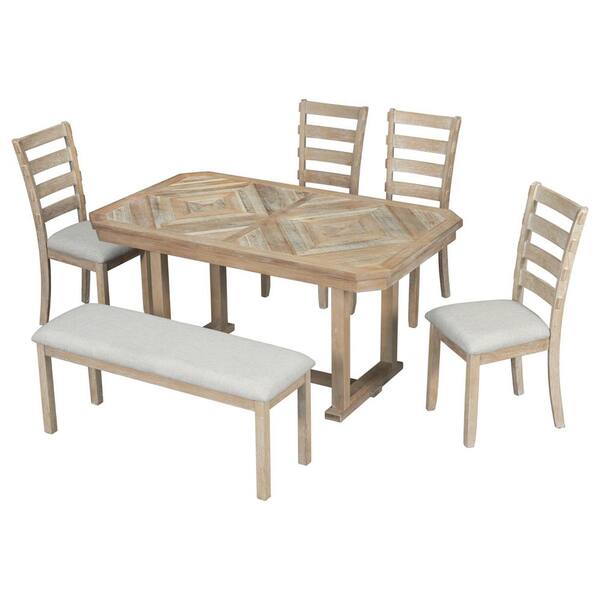 6-Piece Solid Wood Outdoor Conversation Patio Furniture Set with Gray Cushions