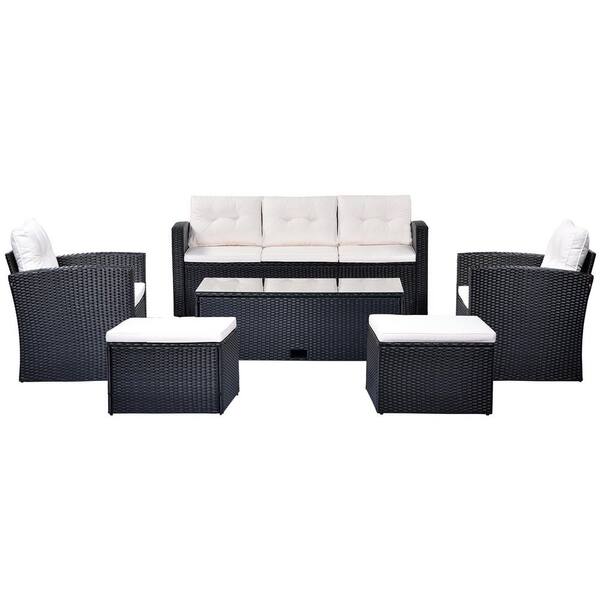 6-Piece Wicker Outdoor Conversation Patio Furniture Set with Beige Cushions