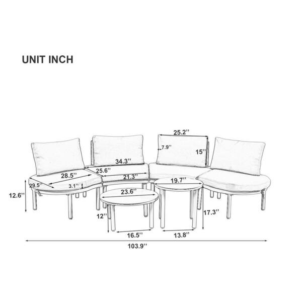 6-Piece Wicker Outdoor Half Moon Conversation Patio Furniture Set with Gray Cushions