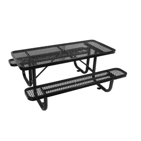 6 ft. Black Rectangle Carbon Steel Picnic Table Seats 6 People with Umbrella Hole
