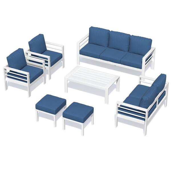 7-Piece Aluminum Outdoor Sectional Set with Blue Cushions, Patio Conversation Sofa Set for Garden, Backyard, Poolside