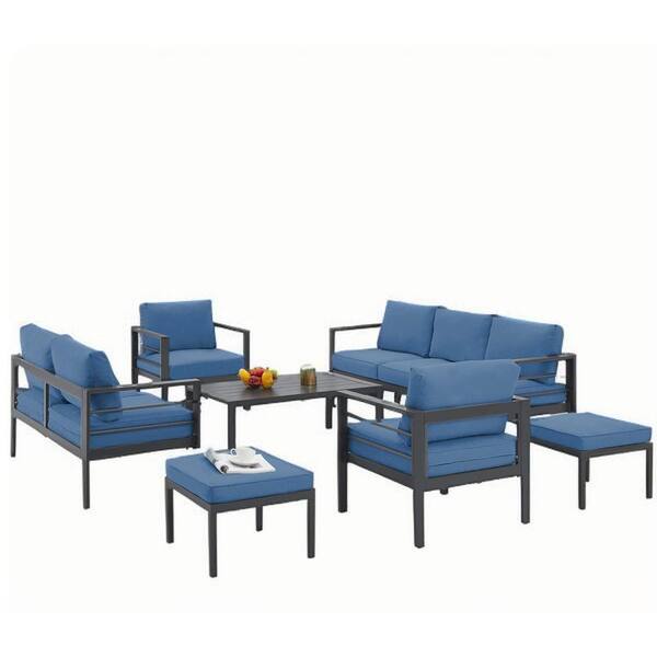 7-Piece Aluminum Outdoor Sectional Set with Blue Cushions, Patio Conversation Sofa Set for Garden, Backyard, Poolside