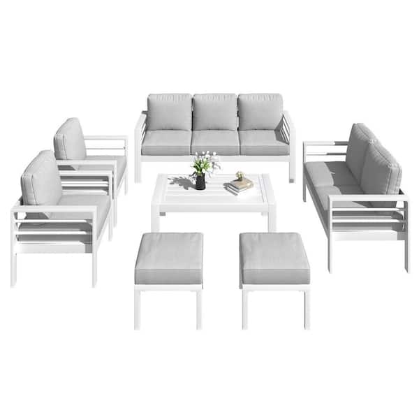 7-Piece Aluminum Outdoor Sectional Set with Gray Cushions, Patio Conversation Sofa Set for Garden, Backyard, Poolside