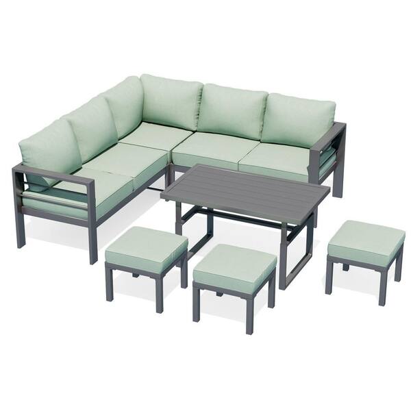 7-Piece Aluminum Outdoor Sectional Set with Green Cushions, Patio Conversation Sofa Set for Garden, Backyard, Poolside