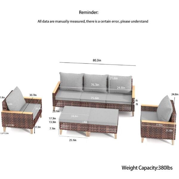 7-Piece Brown PE Rattan Wicker Outdoor Sectional Sofa Set with Gray Cushions and Ottomans for Pool, Patio, Backyard