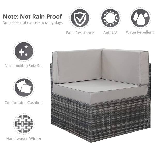 7-Piece Gray Wicker Patio Conversation Set with Gray Cushions and Coffee Table