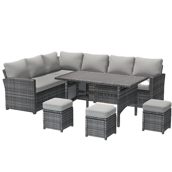 7-Piece Gray Wicker Patio Conversation Set with Gray Cushions and Table