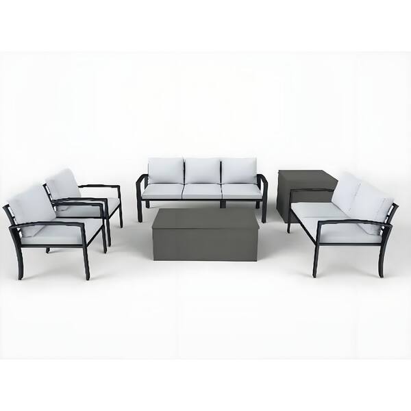 7-Piece Metal Patio Conversation Set with Gray Cushions, Outdoor Furniture Set Include Chairs and Tables with Storage