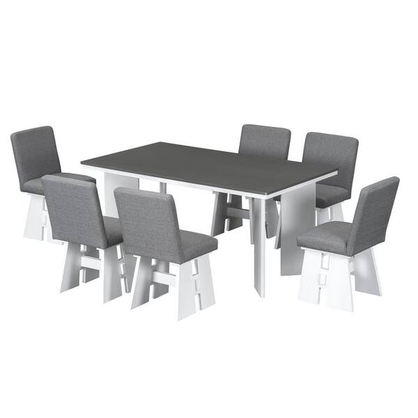 7-Piece Rubber Wood Outdoor Conversation Patio Furniture Set with Dark Gray Cushions