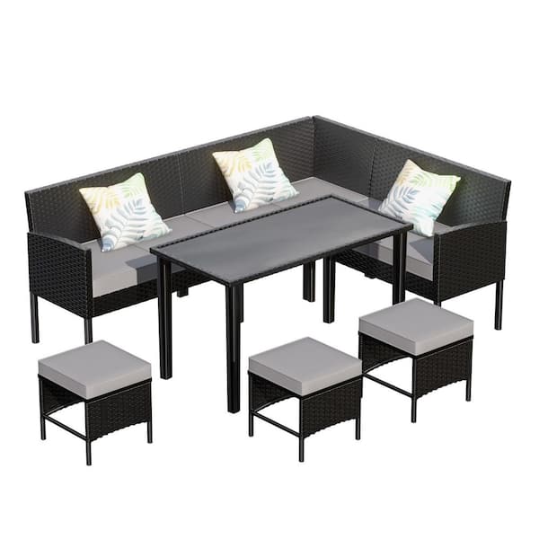 7-Piece Wicker Outdoor Conversation Patio Furniture Set with Gray Cushions