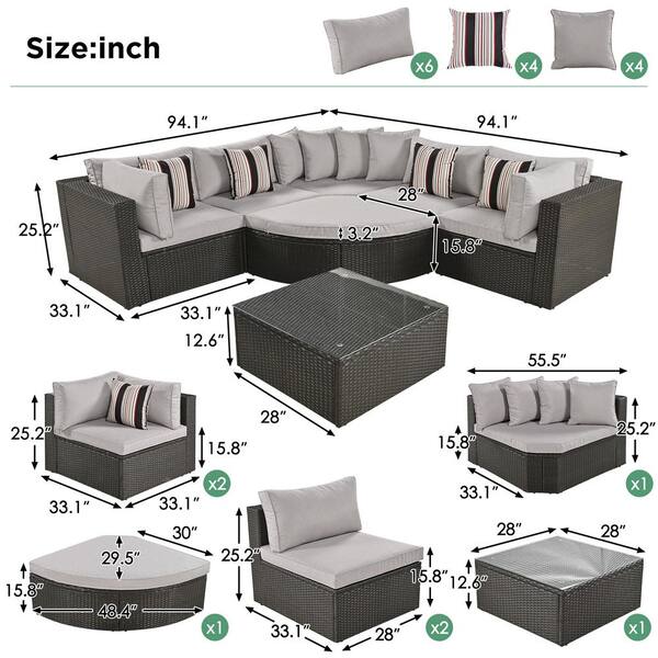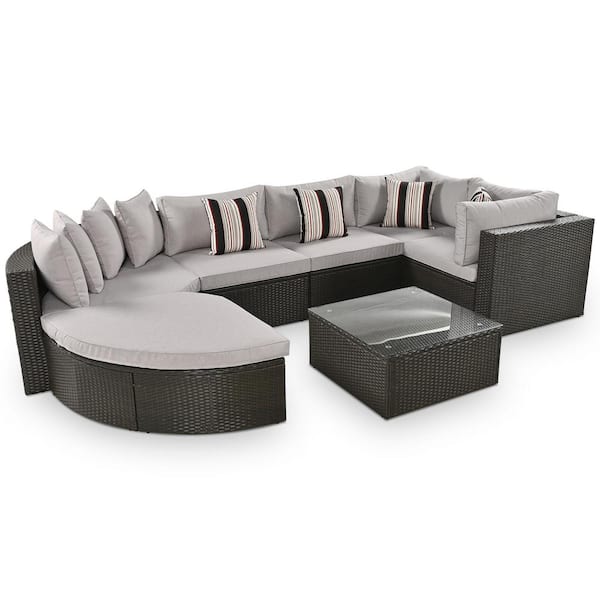 7-Pieces Outdoor Wicker Sofa Set Patio Furniture sofa set with Gray Cushions