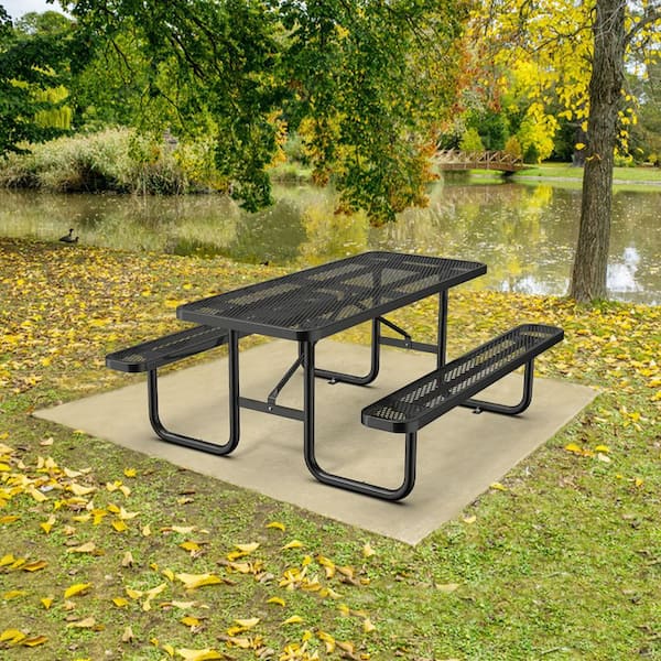72 in. Outdoor Black Rectangle Steel Picnic Table Seats 4 People