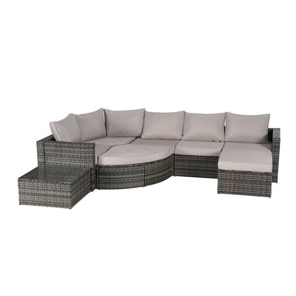 8-Piece Wicker Outdoor Conversation Patio Furniture Set with Light Gray Cushions