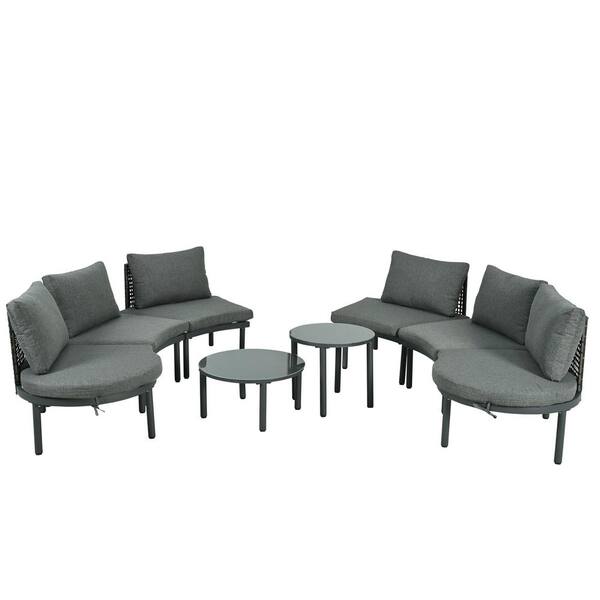 8-Piece Wicker Outdoor Half Moon Conversation Patio Furniture Set with Gray Cushions