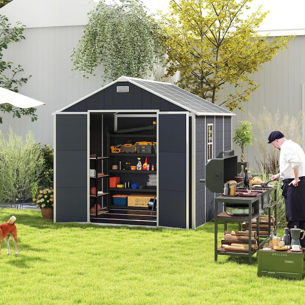 8 ft. W x 8 ft. D Outdoor Resin Shed, Plastic Storage Shed with Window, Floor and Double-Door for Garden, Patio, Yard