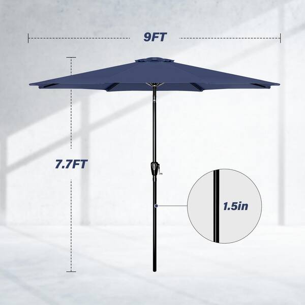 9 ft. Outdoor Market Table Patio Umbrella with Button Tilt, Crank and 8-Sturdy Ribs for Garden in Navy Blue