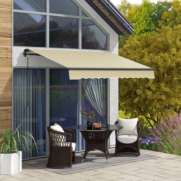 Beige 8 ft. x 6.5 ft. Sun Shade Shelter with Manual Crank Handle