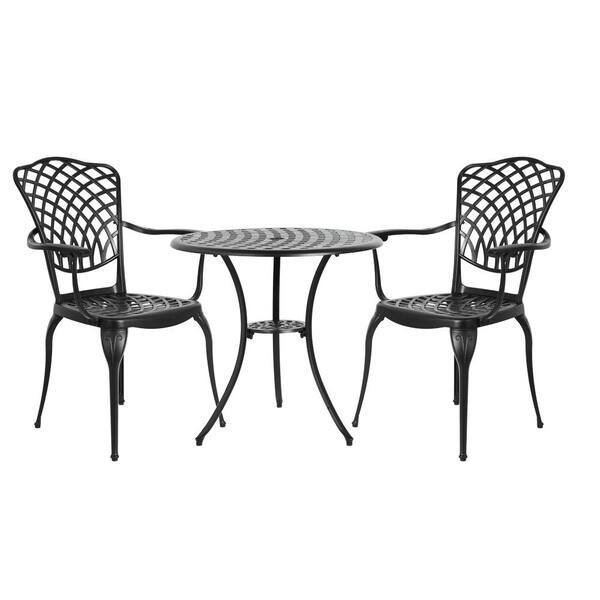 Black 3-Piece Outdoor Rust-Resistant Cast Aluminum Patio Bistro Set