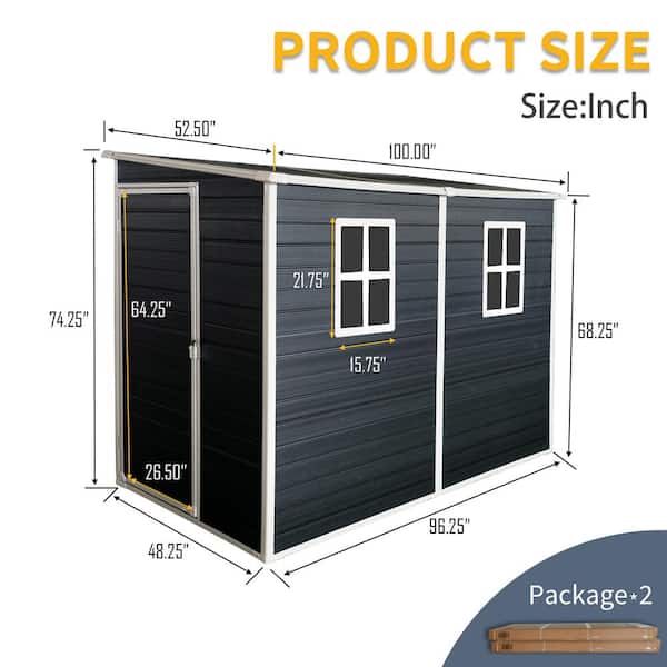 Black 8 ft. W x 4 ft. D Outdoor Storage Shed with Floor Resin Shed with 2-Windows, Lockable Doors for Patio(32 sq. ft.)