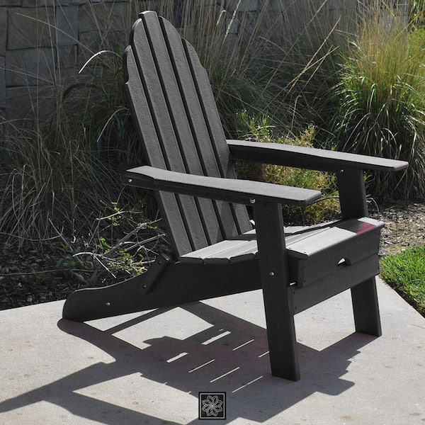 Black HDPE Outdoor Patio Adirondack Chair 1-Piece