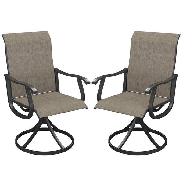 Brown Swivel Metal Patio Outdoor Dining Chair (2-Pack)