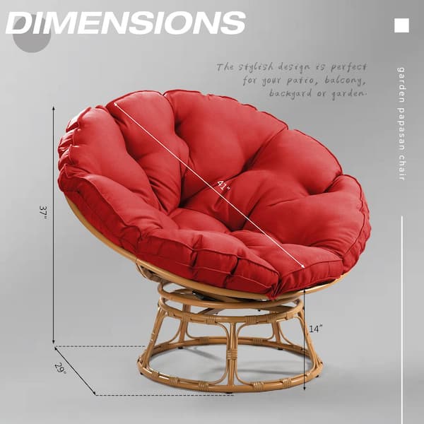 Brown Wicker Outdoor Patio Lounge Chair with Red Cushion