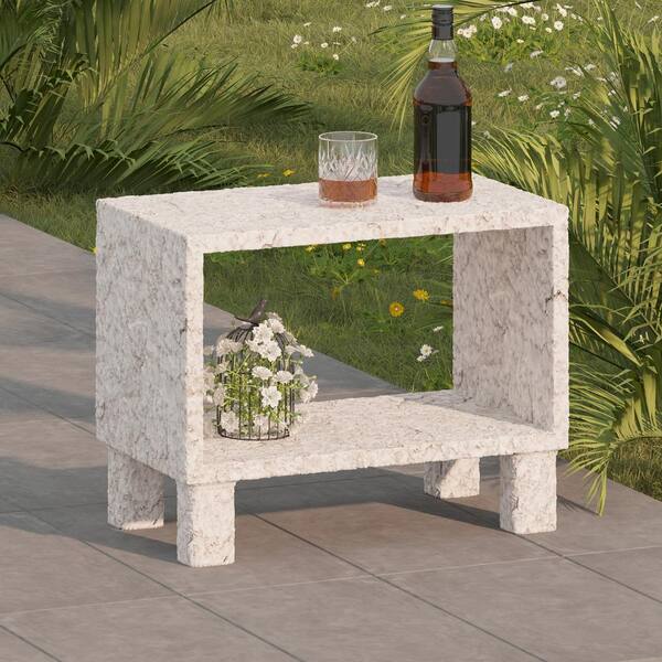 Creamy Beige 23 in. x 13 in. x 18 in. Rectangular Magnesium Oxide Outdoor Side Table Garden Accent Table