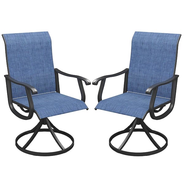 Dark Blue Swivel Metal Patio Outdoor Dining Chair (2-Pack)