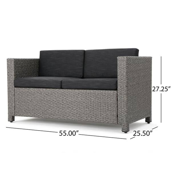 Dark Brown 4-Piece Faux Rattan Outdoor Metal Patio Conversation Set with Black Cushions