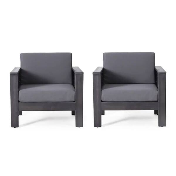 Dark Gray Acacia Wood Outdoor Dining Chair Club Chair with Dark Gray Cushions (2-Pack)