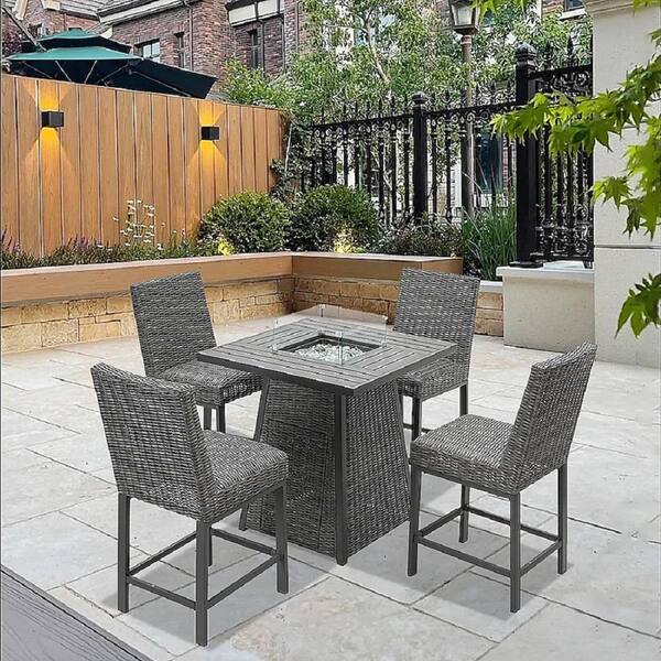 Gray 5-Piece Wicker Patio Conversation Set with 36 in. Aluminum Fire Pit Table