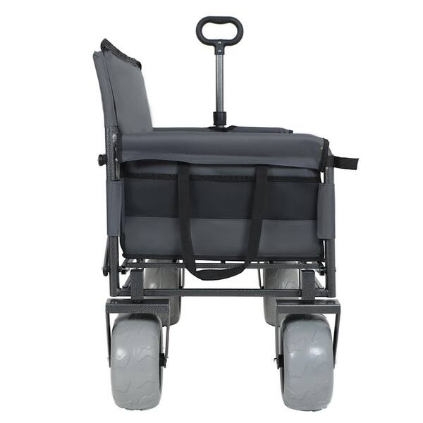 Gray 6.4 cu. ft. Steel Garden Cart, 3-in-1 Folding Wagon, Convertible to Chair