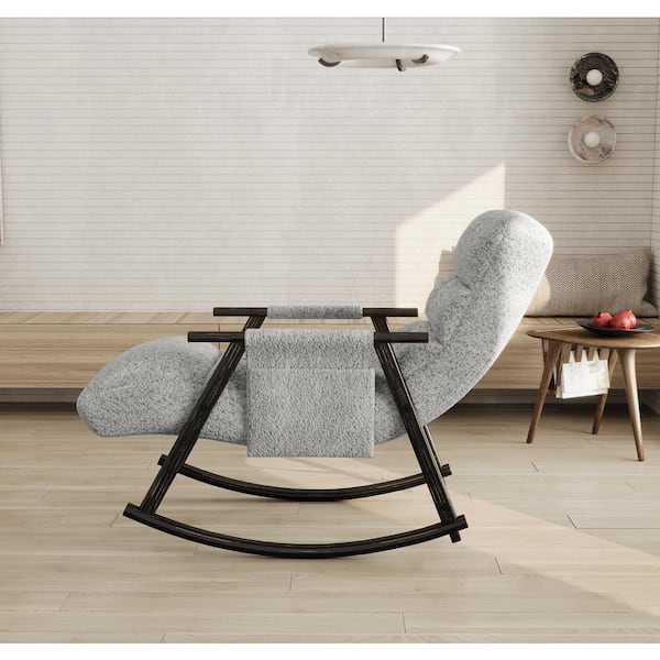 Gray Modern Velvet Folding Metal Outdoor Rocking Chair with Adjustable High Back and Foot Rest
