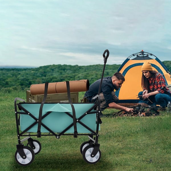 Green 3 cu. ft. Steel Garden Cart with Strapping System, Collapsible Foldable Wagon Car