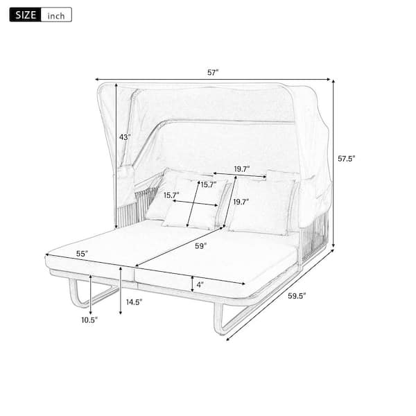 Metal Patio Outdoor Double Day Bed Round Sofa Furniture Set with Gray Cushions and Detachable Pillows