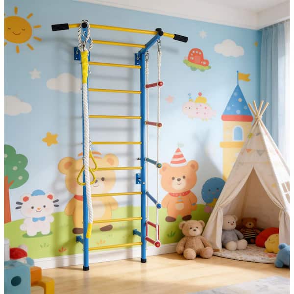 Multicolor Playset Laddeer Wall Gym With Rope Ladder, Pull-up Bar, Wall Ladder, Rope, And Gymnastic Rings