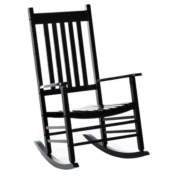 Patio Wood Rocking Chair with Smooth Armrests Black Outdoor Rocking Chair