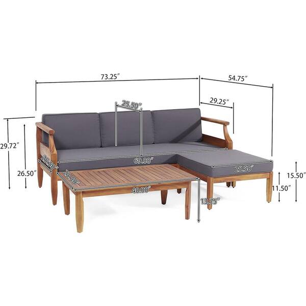 Teak 2-Piece Wood Outdoor Sofa Couch Conversation Set with Dark Gray Cushions