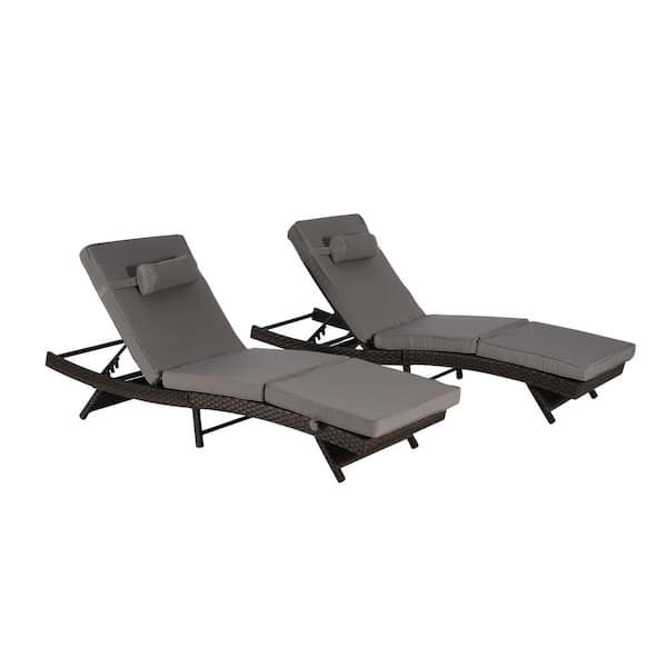 Wicker Outdoor Reclining Lounge Chair Sunbathing Chairs with Dark Gray Cushions (Set of 2)