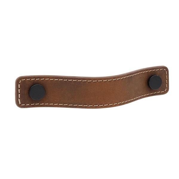 2-Pack Saddle Leather 4 in. (102 mm) Center-to-Center Rustic Matte Black Drawer Pull